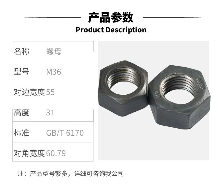 产品详情:螺母是一种螺母,是用螺栓或螺丝拧在一起以固定的零件。这是所有制造机器都须要用到的原始零件。坚果品种很多。我们常见的是国家标准,英国基准,美标,日本基准螺母。根据材质的不同,螺母分成碳素钢,高强度,不锈钢和塑料钢。