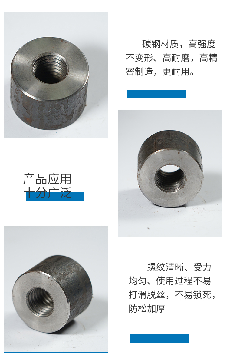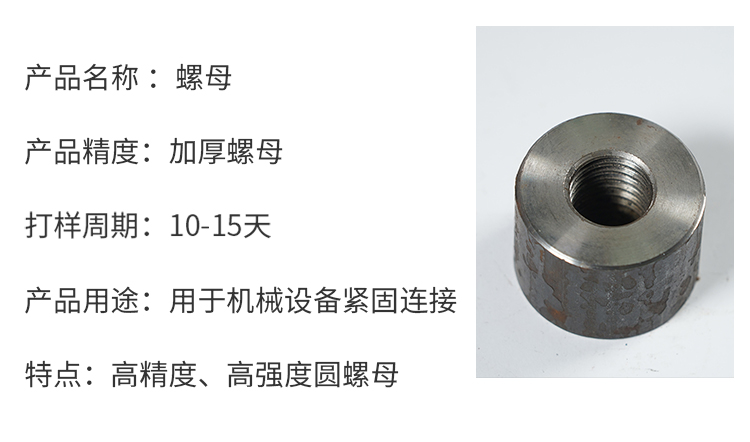 产品详情:坚果有很多用处。作为紧固件,螺母需经历各种繁复的环节,并需维持长期的稳定性。机器建筑物螺母是建筑物机器和装置中常用的螺母。8级螺母的生产过程是:板件→退火→酸洗→抽线→成型→攻牙→表面处理→包装。一系列加工操作保证了螺母的耐用性。