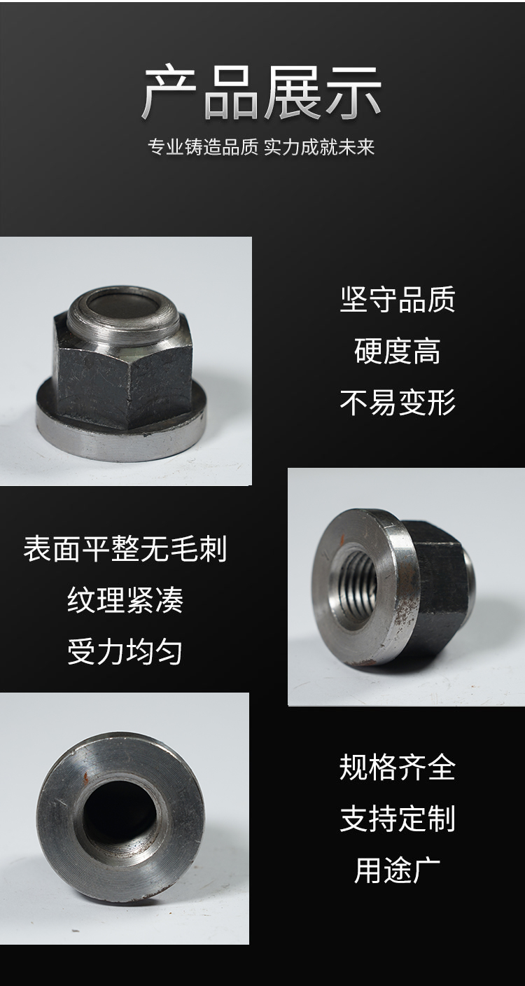 产品详情:法兰螺母与平常六角螺母的尺码和螺纹基准基本相同,但是与六角螺母相比之下,它是一件式垫圈和螺母,并且在下面有防滑齿,从而增加了螺母和铸件与平常螺母和垫圈的组合相比之下,表面积接触愈发强。法兰螺母面本身有着平垫和弹簧垫的防滑和止动功用,因此无须添加平垫和弹簧垫。组装过程中的弹簧垫。